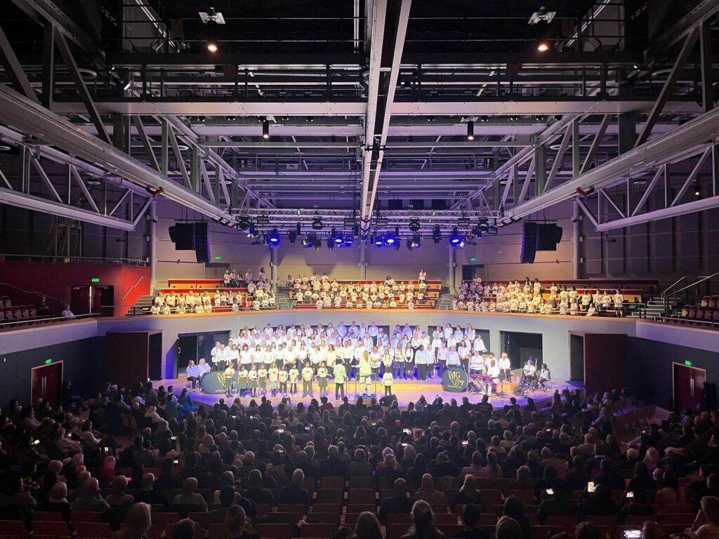 On Sunday we kicked off our Christmas tour in incredible style at the stunning Butterworth Hall, Warwick Arts Centre – and what a show it was! With 120 BIG Sing choir members, 150 children from five Primary Schools, and 10 singers from our ELEVATE SOUL choir (for those living with Parkinson’s or recovering from strokes), we stood united as ONE BIG Sing Choir, filling the stage and the room with joy, passion and Christmas spirit. The hall was buzzing with an audience of over 400 voices joining in, as they clapped, sang and danced along – you could feel the community come alive!