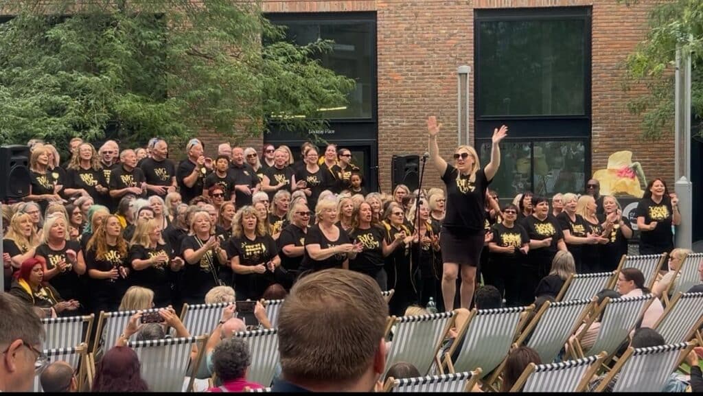 Wow what a sound the choir made! Every song sounded so powerful. We are so proud of our choir members – we could hear all the harmonies and they looked so full of energy! We are grateful to the 140 choir members who could make it – we just blew Camden Market away – and what a big crowd we had watching. We loved creating another amazing BIG Sing memory together!